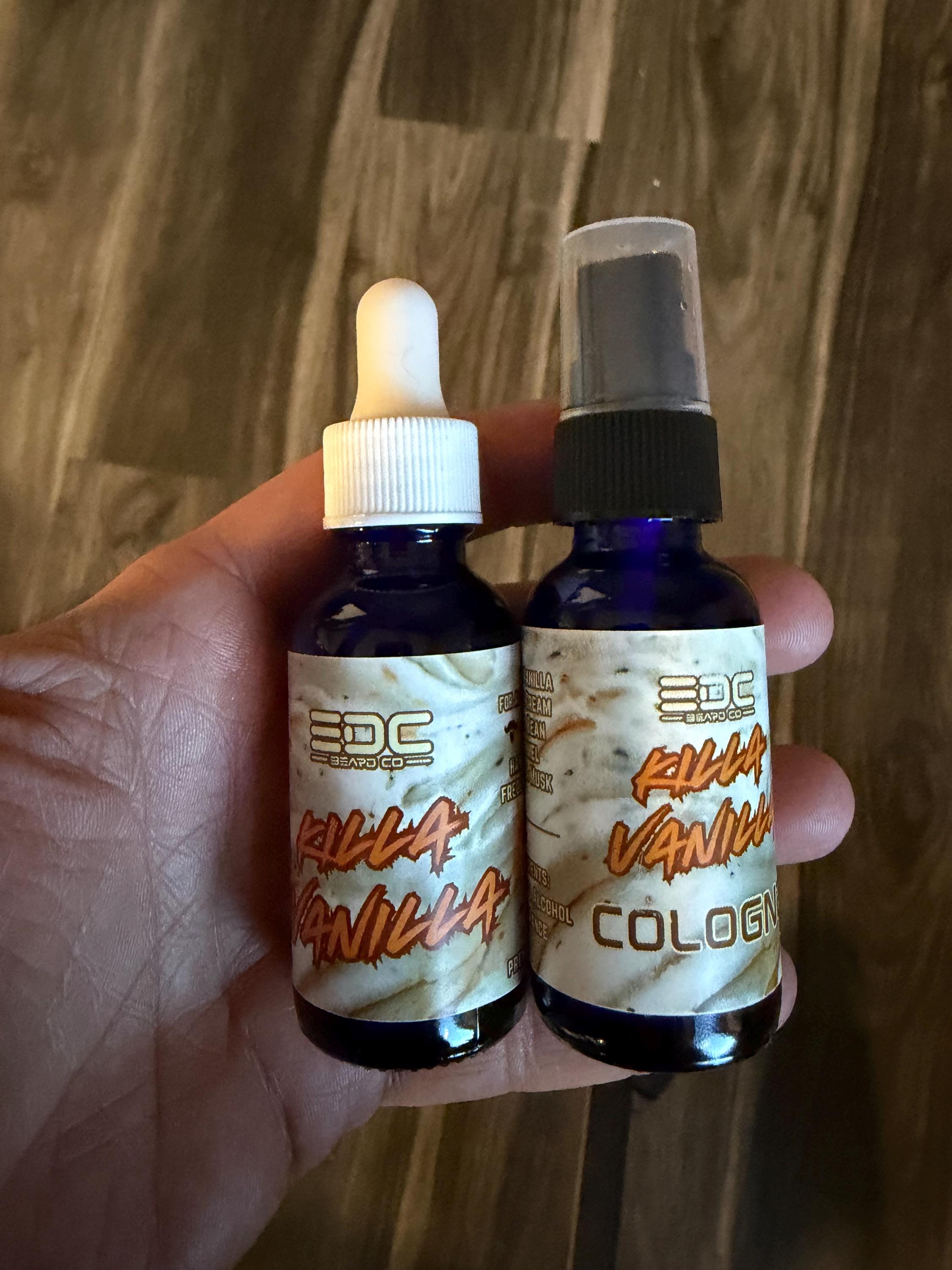 Made with an amazing base of various high-quality fragrances and denatured alcohol, EDC Beard Co's Cologne (Parfum) is in its most concentrated form. Averaging around 30% of fragrance in a bottle! Each cologne is shipped with a sealed black cap to ensure no leaking! (a black spray mister is also included for you to attach once received)